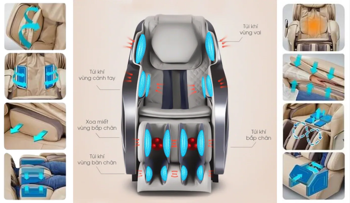 Các chế độ massage chuyên biệt cho từng vùng: cổ vai gáy, lưng, bắp chân, bàn chân.