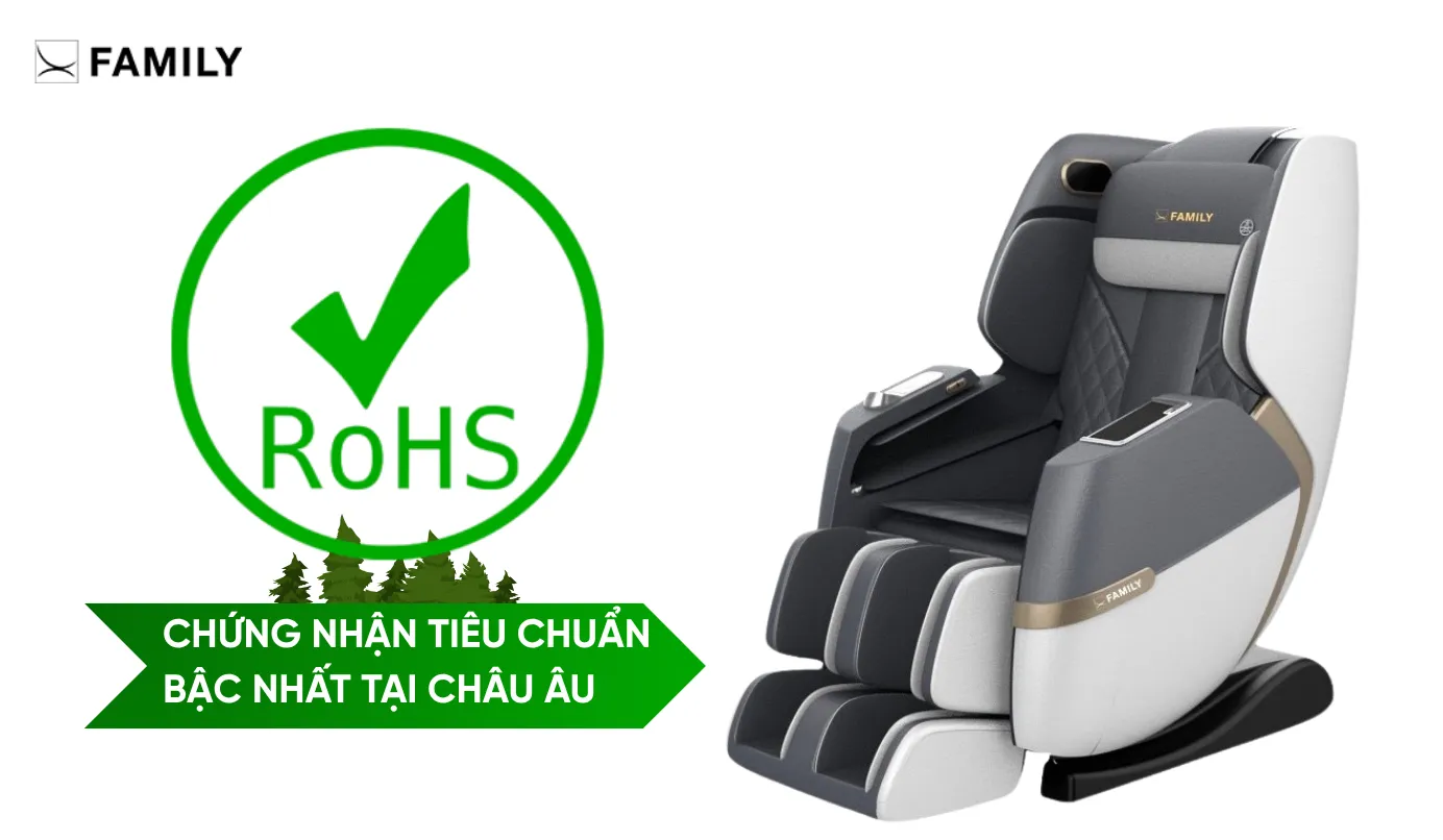 Việc các sản phẩm ghế massage Family đạt chứng nhận RoHS là một cam kết mạnh mẽ về trách nhiệm sức khỏe cộng đồng và môi trường sống. Mỗi linh kiện điện tử, bảng mạch, dây điện, lớp sơn hay vật liệu bọc ghế đều được lựa chọn và kiểm tra kỹ lưỡng để đảm bảo không chứa chất độc hại có thể ảnh hưởng đến sức khỏe người dùng, đặc biệt là với người cao tuổi, trẻ nhỏ và người có làn da nhạy cảm.